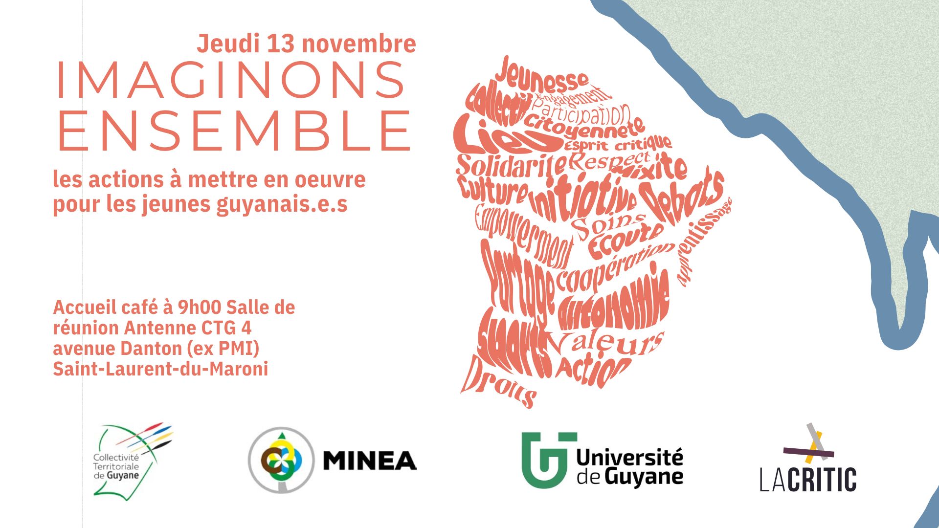 L’objectif principal est d’échanger autour des enjeux et des questionnements sur l’éducation populaire et l’émancipation des jeunes. L’appel est lancé : « IMAGINONS ENSEMBLE les actions à mettre en œuvre pour les jeunes guyanais.e.s ».
