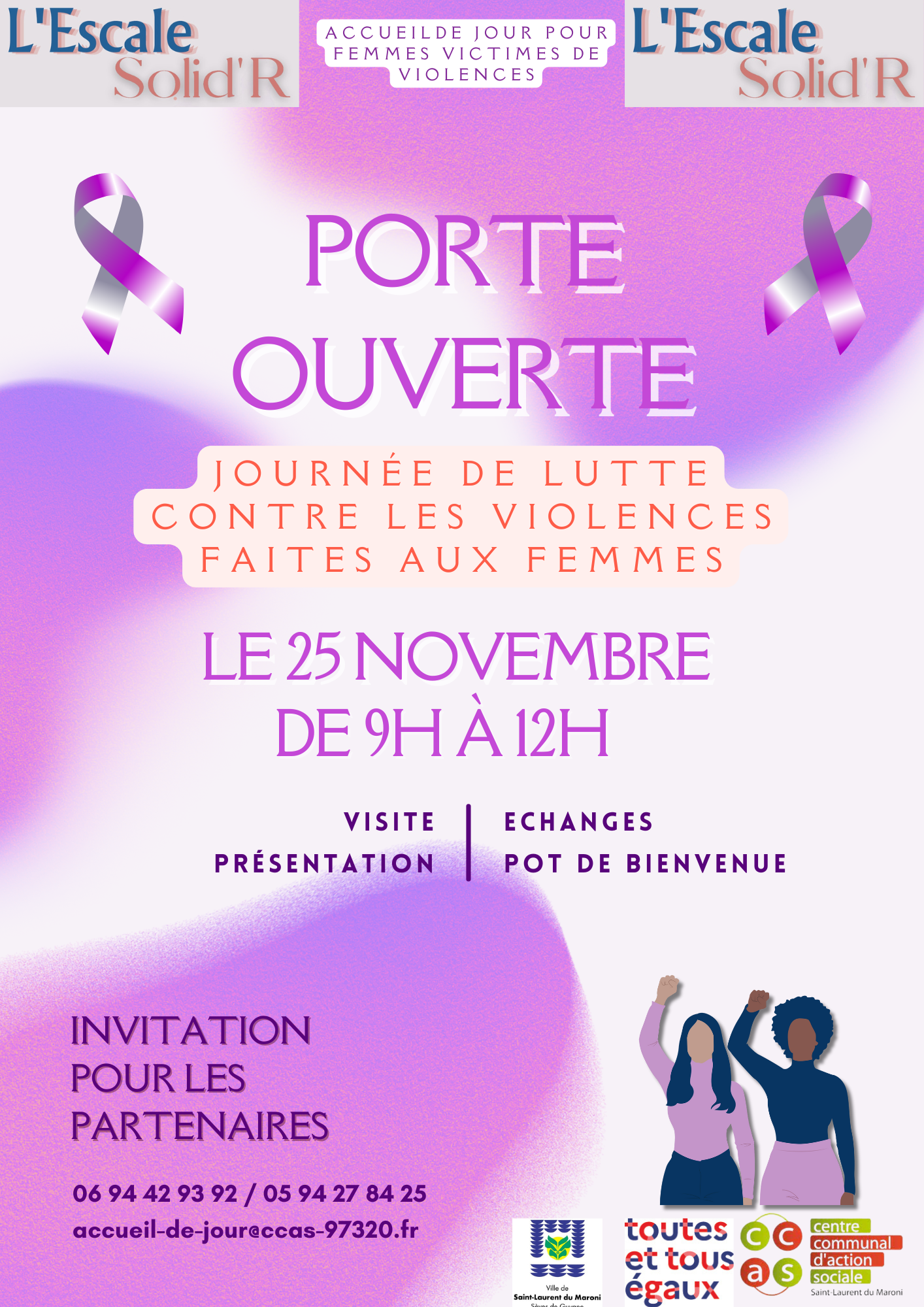 À l’occasion de la Journée internationale de lutte contre les violences faites aux femmes, le 25 novembre 2025, l’Escale Solid’R – Accueil de jour pour femmes victimes de violences à Saint-Laurent du Maroni – organise une matinée Portes Ouvertes dédiée à ses partenaires institutionnels et associatifs.