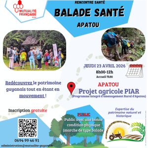 Dans le cadre de ses missions de prévention et de promotion de la santé, la Mutualité Française Guyane organise une nouvelle édition de ses « Balades Santé ». Cette rencontre, qui se déroulera sur la commune d’Apatou, propose aux participant·es un parcours dynamique axé sur la redécouverte du patrimoine local.