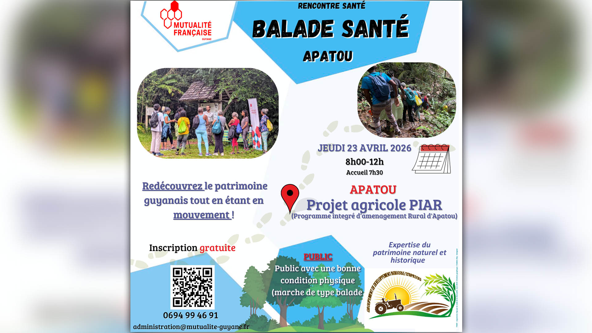 La Mutualité Française Guyane invite les habitant·es à allier sport et culture lors d’une marche thématique organisée le jeudi 23 avril 2026. Une occasion de découvrir le projet agricole PIAR tout en prenant soin de sa santé.