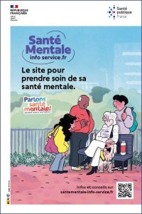 Une affiche de valorisation du site est également disponible en téléchargement sur le site de Santé publique France et peut être commandée gratuitement. Les organismes sont invités à l’afficher dans leurs locaux pour contribuer à faire connaître santementale-info-service.fr auprès du public.