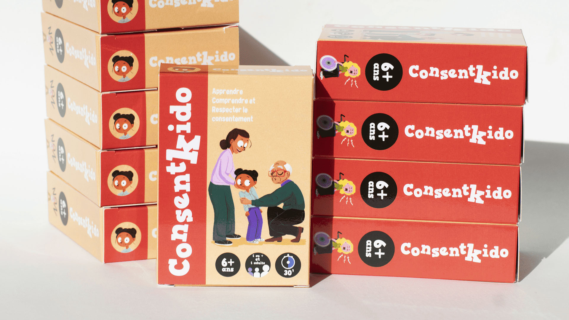 ConsentKido est un jeu de cartes ludopédagogique qui initie les enfants, dès le primaire et au collège, à la notion essentielle de consentement. À travers des situations concrètes, ils apprennent à dire oui, non, à reconnaître leurs limites, à respecter celles des autres, à écouter et à s’exprimer avec clarté.