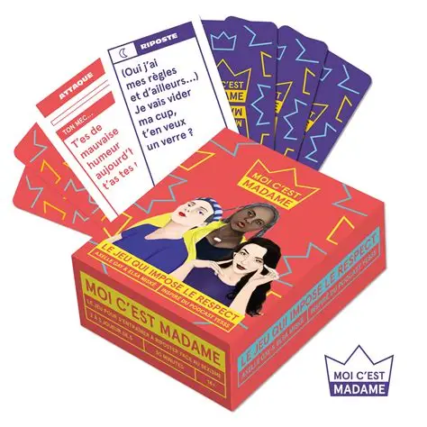 Résumé : Ce jeu vous entraine à riposter contre le sexisme, à libérer votre créativité, à travailler votre répartie et à découvrir plein de choses sur la culture féministe. Moi c'est Madame comporte 220 cartes d'attaques et de ripostes pour combattre les stéréotypes de genre. Vous y trouverez aussi des défis, des challenges et plein de surprises pour passer un bon moment en famille, entre collègues ou entre ami.e.s.